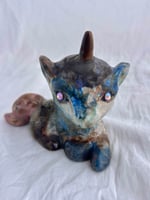 A rare and beautiful piece of a resting unicorn with Stravoski Crystal eyes. Made in Japanese Raku.